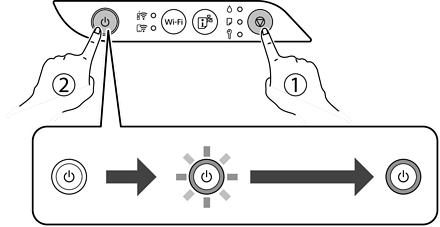 ボタンを押したまま電源を入れて、電源ランプが点滅したら指を離します。