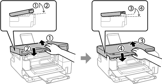 打印机盖不能从以下所示的位置打开。必须完全关闭打印机盖后,才能再次将其打开。