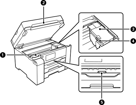 Escaneja els originals col·locats. Obriu per retirar el paper embossat. Aquesta unitat s'hauria de mantenir tancada. |