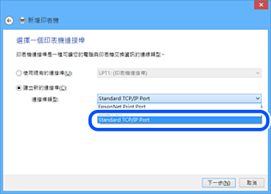 使用標準 TCP/IP 在列印伺服器上針對網路列印建立列印佇列,然後設定網絡連接埠。