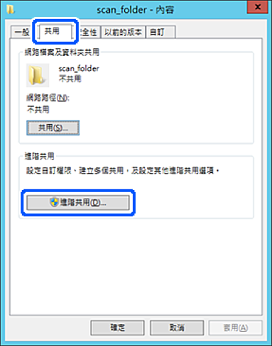 會顯示共用資料夾的網路路徑。在登錄至印表機的聯絡人時會使用此資訊。請將此資訊寫下來。