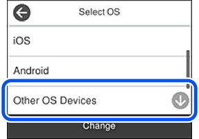 スマートデバイスのWi-Fi接続画面を表示し、プリンターの操作パネルに表示されたSSIDを選択して、パスワードを入力します。