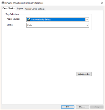 Vælg Indstillinger eller Egenskaber for at åbne printerdrivervinduet.