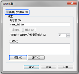 此时会显示共享文件夹的网络路径。注册本产品联系人时会使用此路径。请将此路径记录下来。