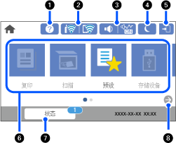 指示是否为本产品设置了安静模式。启用此功能时,本产品操作产生的噪音会减小,但打印速度可能会变慢。但是,使用某些打印纸类型和打印质量时,噪声可能不会减小。 |