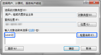 如果不知道群组或用户的全名,可输入一部分名称,然后单击检查名称。这时会列出与这部分名称匹配的组名或用户名,然后便可从列表中选择全名。