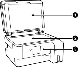 Scans placed originals. Open to remove jammed paper. This unit should usually be kept closed. |