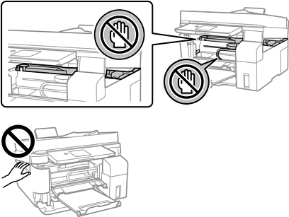 Nu atingeți butoanele de pe panoul de comandă în timp ce mâna dumneavoastră este în interiorul imprimantei. Dacă imprimanta începe să funcționeze, vă puteți răni. Aveți grijă să nu atingeți părțile proeminente pentru a nu vă răni.