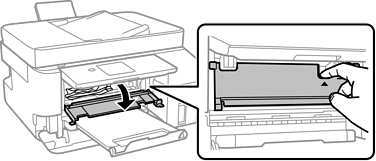 Scanerul nu poate fi deschis din poziția afișată mai jos. Închideți-l complet înainte de a-l deschide.