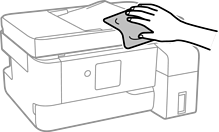 Eger komponentler we çehol hapa ýa-da tozanly bolsa, printeriň toguny öçüriň we olary suw bilen öllenen ýumşak, arassa mata bilen arassalaň. Hapany aýryp bilmeseňiz, öl mata az möçberde ýeňiljek ýuwujy serişde goşup görüň.