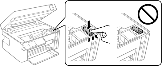 مطمئن شوید درپوش مخزن جوهر به طور محکم بسته شده است.