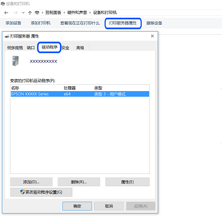 单击驱动程序标签。如果打印机名称显示在列表中,则表明您的计算机上已安装了正版爱普生打印机驱动程序。