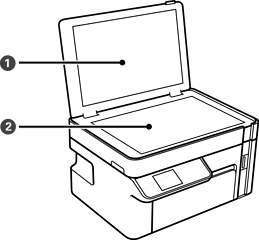 Skenira postavljene izvornike. Otvorite kako biste napunili spremnik tinte ili uklonili zaglavljeni papir. Ovaj uređaj se obično drži zatvoren. |