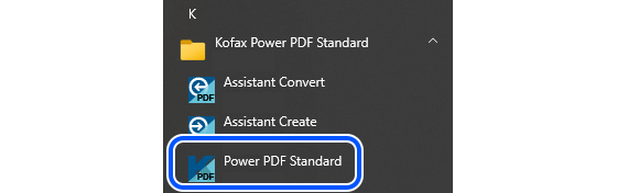 - Depuis le menu Démarrer de Windows, sélectionnez [Kofax Power PDF Standard] > [Power PDF Standard].