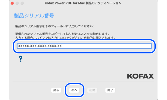 - アプリケーションフォルダーで、[Kofax Power PDF for Mac]をクリックして、画面の指示に従って進みます。