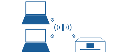 アドホックモードは、市販のアクセスポイントを介さずにパソコンとプリンターを無線で直接通信するモードです。