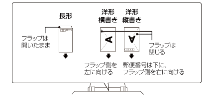 ハガキや封筒などは印刷面を手前にして、以下のようにセットしてください。