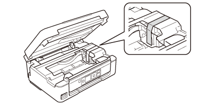 インクカートリッジセット部を固定したテープは輸送後直ちに剥がしてください。テープの種類によっては、長時間貼り付けたままにしておくと糊が剥がれにくくなることがあります。
