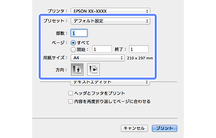 ここでは、Mac OS Xに付属のソフトウェア「テキストエディット」を例にして、印刷の基本手順を説明します。