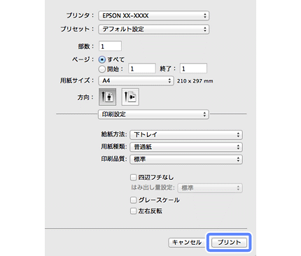 設定が終了したら、[プリント]をクリックして印刷を開始します。