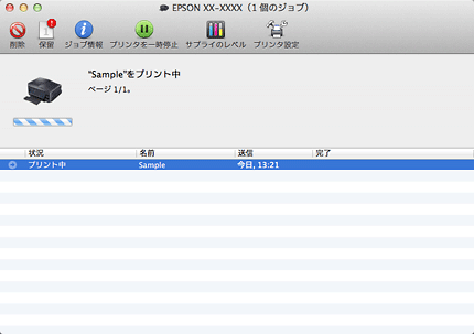 印刷中に[Dock]内の[プリンタ]アイコンをクリックすると、印刷状況を確認できます。