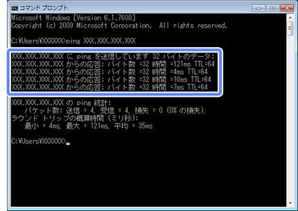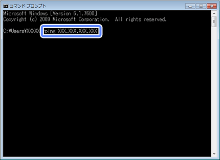「ping xxx.xxx.xxx.xxx」と入力して、[Enter]キーを押します。