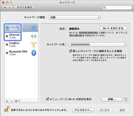[アップル]メニュー-[システム環境設定]-[ネットワーク]の順にクリックしてください。
