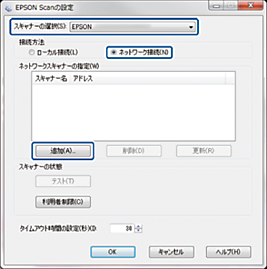 [追加]画面が表示されないときは、[EPSON Scanの設定]で[追加]をクリックしてください。