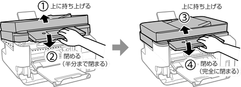 スキャナーユニットを「カチッ」と音がするまで開けます。