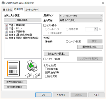 多用する設定の登録や削除ができます。登録した設定は、リストから選択することで使用できます。