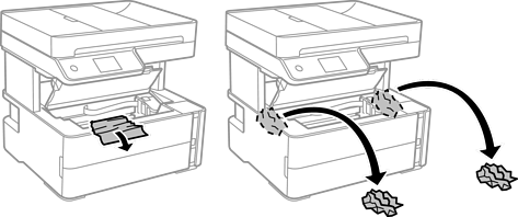 内部に手を入れるときは、操作パネルのボタンには触らないでください。プリンターが動作してけがをするおそれがあります。また、突起などでけがをしないように注意してください。
