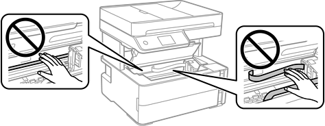 プリンター内部のケーブル(白色)や半透明フィルム、インクチューブには触らないでください。動作不良の原因となるおそれがあります。半透明フィルムに触ってしまった場合は、フィルムを清掃してください。