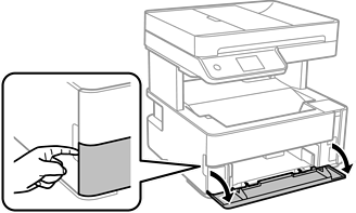 1用紙カセットカバーを「カチッ」と音がするまで開けます。