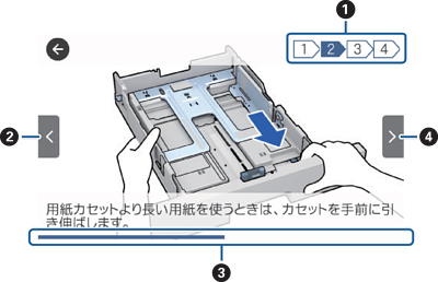 この画面の例では、全4手順中の2番目の手順を表示していることを示します。