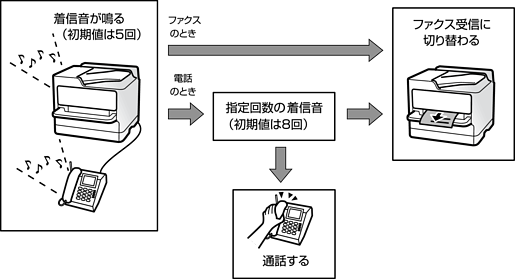 着信音を指定回数(初期設定は5回)鳴らしてから、ファクスか電話かを自動判別します。
