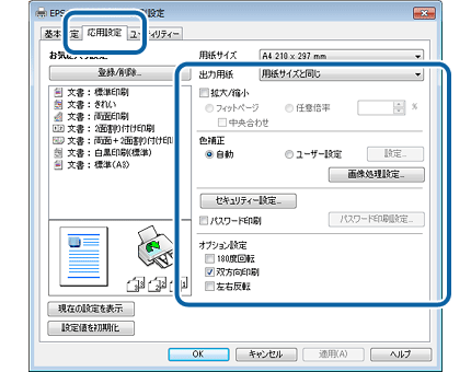 [基本設定]タブで[印刷プレビューを表示]を設定しておくと、プリンターの印刷開始前にパソコンの画面で印刷イメージが確認できます。