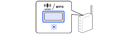 「アクセスポイントのプッシュボタンを押してください。」と表示されたら、アクセスポイントの【AOSS】ボタンまたは【WPS】ボタンを、セキュリティーランプが点滅するまで押します。次に操作パネルの【OK】ボタンを押します。