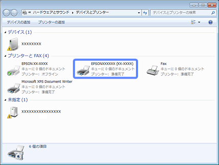 Windows 8以降でエプソンプリンターのプリンタードライバーをインストールしないままネットワークプリンターを接続すると、OS標準のドライバーが設定されます。デバイスとプリンターの表示画面で「EPSONxxxxxx(XX-XXX)」と表示される場合は、エプソンのプリンタードライバーがインストールされていないため、プリンタードライバーを別途インストールすることをお勧めします。プリンタードライバーをインストール後は、プリンターアイコンのプロパティ画面から使用するプリンタードライバーを選択してください。