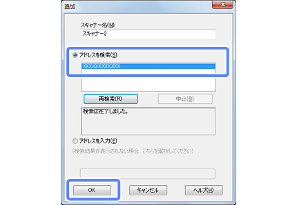 [追加]画面が表示され、自動的にスキャナーが検索されます。