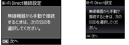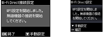 接続する機器がWPSに対応している場合は、WPSボタンを使って機器からの接続を開始します。手動で設定する場合は、【  】を押した後次の画面で【OK】を押します。