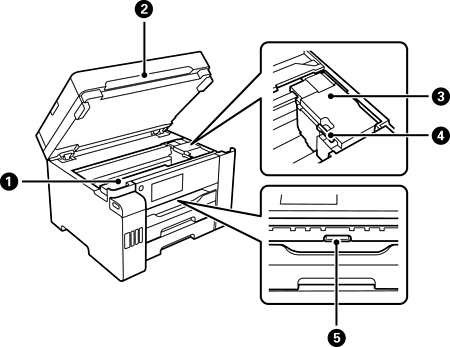 メンテナンスボックスを交換するときに開けます。メンテナンスボックスは、クリーニング時や印刷時に排出される廃インクを溜める容器です。