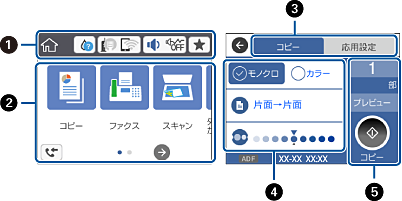 プリンターの状態がアイコンで表示されます。タップすると、現在の設定の確認や各設定のメニューにアクセスできます。