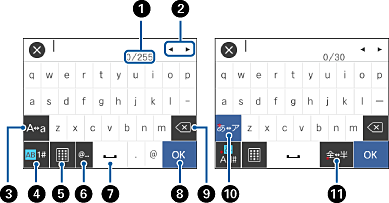 アドレス帳やネットワーク設定などでの文字や記号の入力は、文字入力画面で行います。