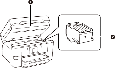 原稿をスキャンします。インクカートリッジの交換や内部に詰まった用紙を取り除くときは開けます。 |