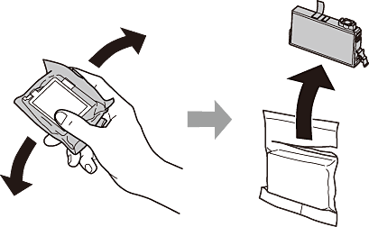 2. 新しいインクカートリッジを4~5回振った後、袋から出します。
