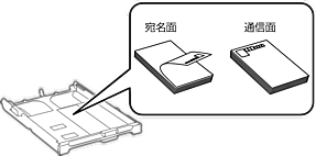 ハガキは、印刷する面を下にしてセットし、用紙ガイドをハガキに合わせてください。