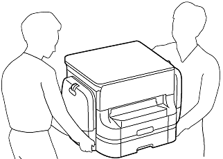 プリンターを持ち上げる際は、無理のない姿勢で作業してください。無理な姿勢で持ち上げると、けがをするおそれがあります。