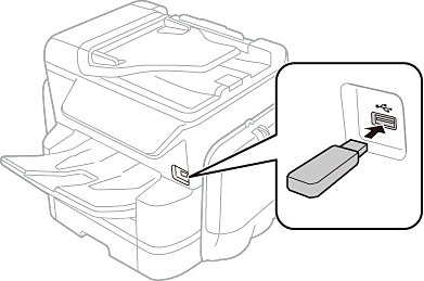 プリンターにセットした外部記憶装置にコンピューターからアクセスした場合は、コンピューターから取り外しの操作をしてから外部記憶装置を取り出します。