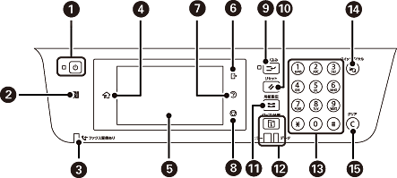 操作項目やメッセージを表示します。 画面をタッチすると項目の選択ができます。画面をなぞるとスクロールできます。 一定の時間以上操作しないとスリープモードになり、表示が消えます。タッチパネルをタップすると復帰します。設定によっては、操作パネルのボタンを押すことにより、スリープモードから元の明るさに戻ります。 |