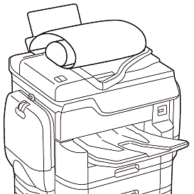 長尺紙は排紙トレイで保持できません。箱などを準備して用紙が床面に落ちないようにしてください。